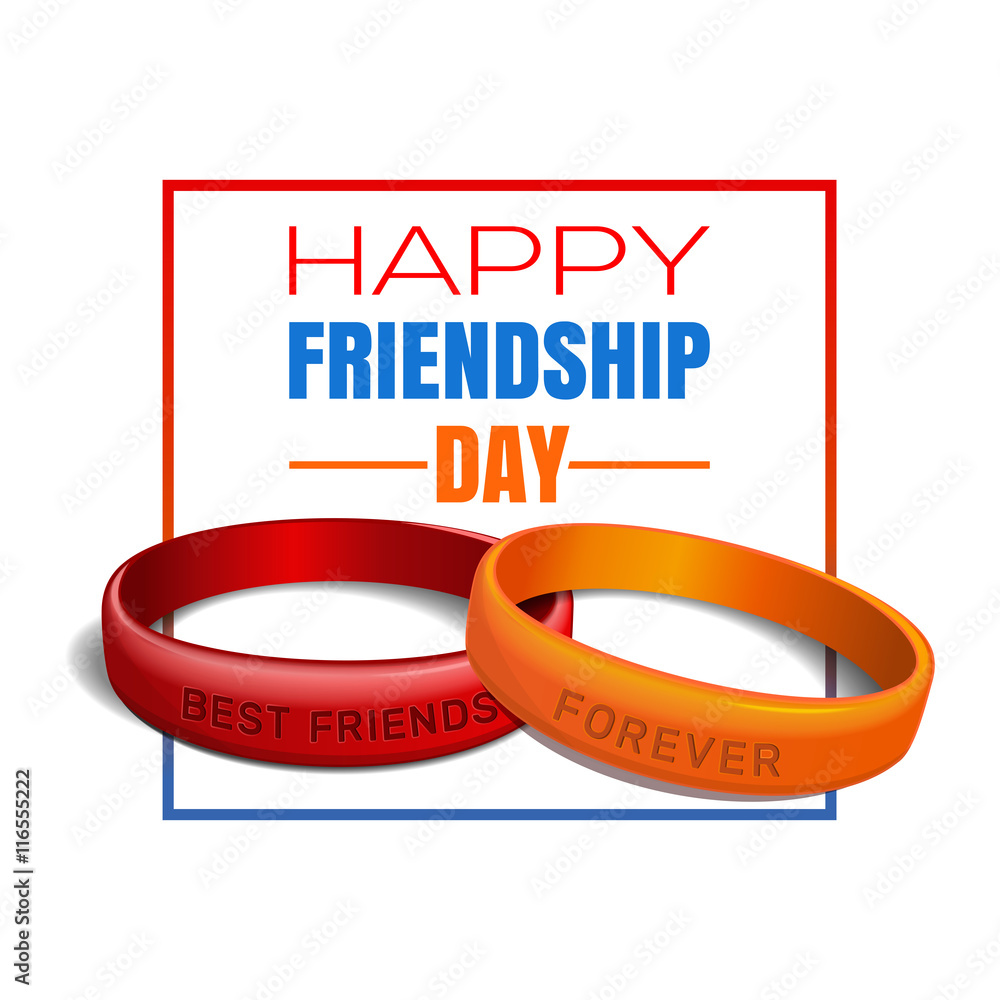 Friendship Day greeting card. Red, orange friendship band and